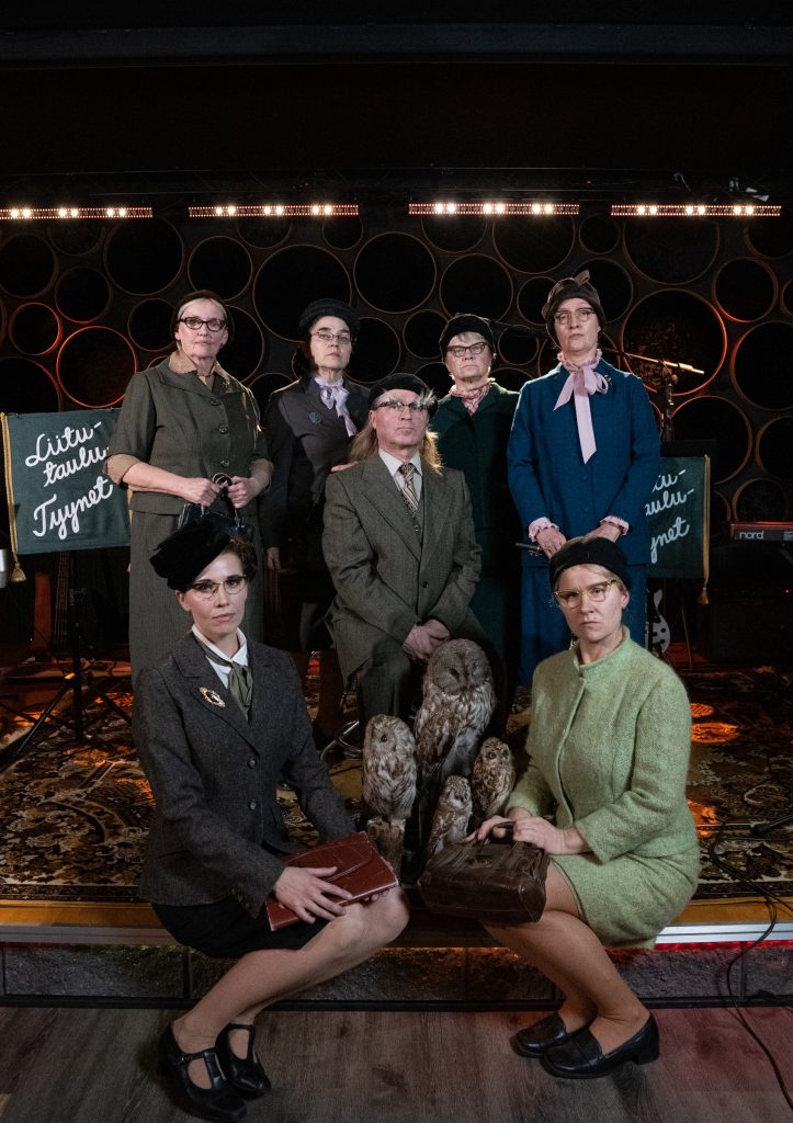 Kuusi hemaisevaa naisseminaarin suloa ja johtajaopettaja Einari Käenoksa pitävät ylipitkän pikkuvälitunnin (n. 40 min) rokaten ja rollaten, humpaten ja jatsaten!